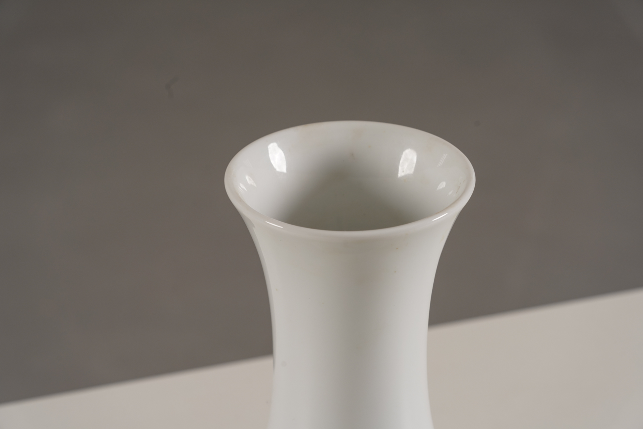 A rare set of two vintage porcelain vases from Germany, 1960’s. They have white bisque bases and long, elegant necks in glossy white glaze.