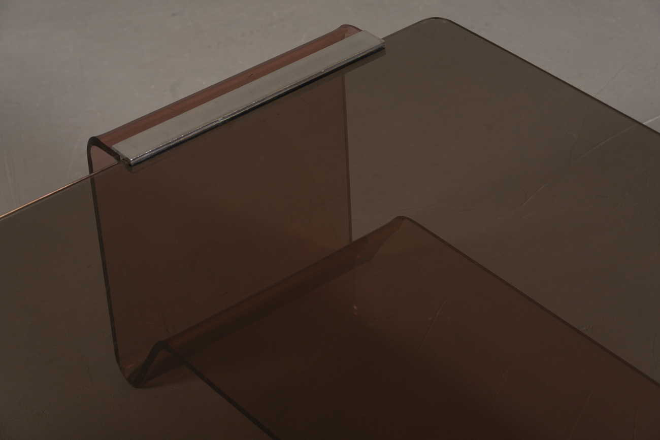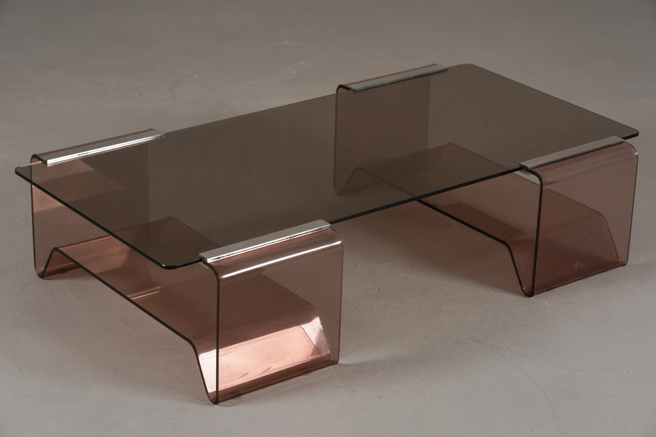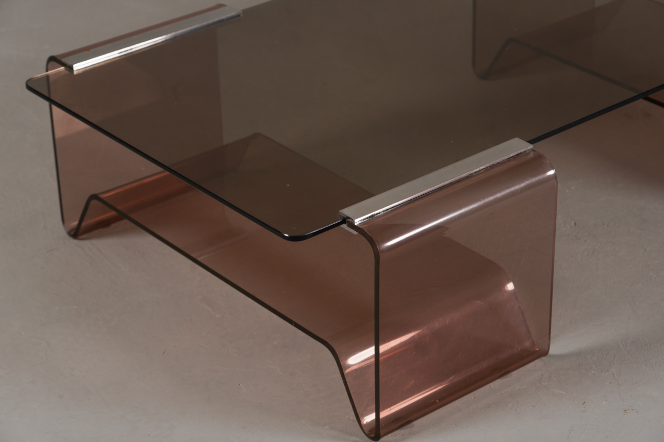 A vintage Michel Dumas plexiglass and glass coffee table for Roche Bobois, France, 1970’s. Designed by Michel Dumas, this piece exemplifies French modernist design, combining industrial materials with refined proportions.