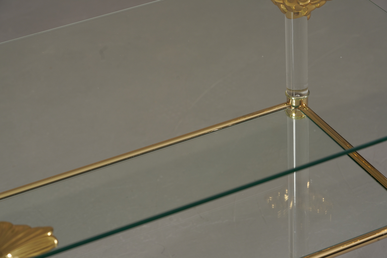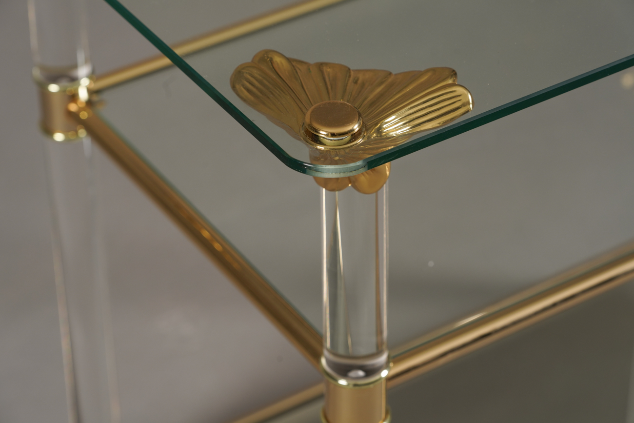 • Brass frame with lucite and glass tiers