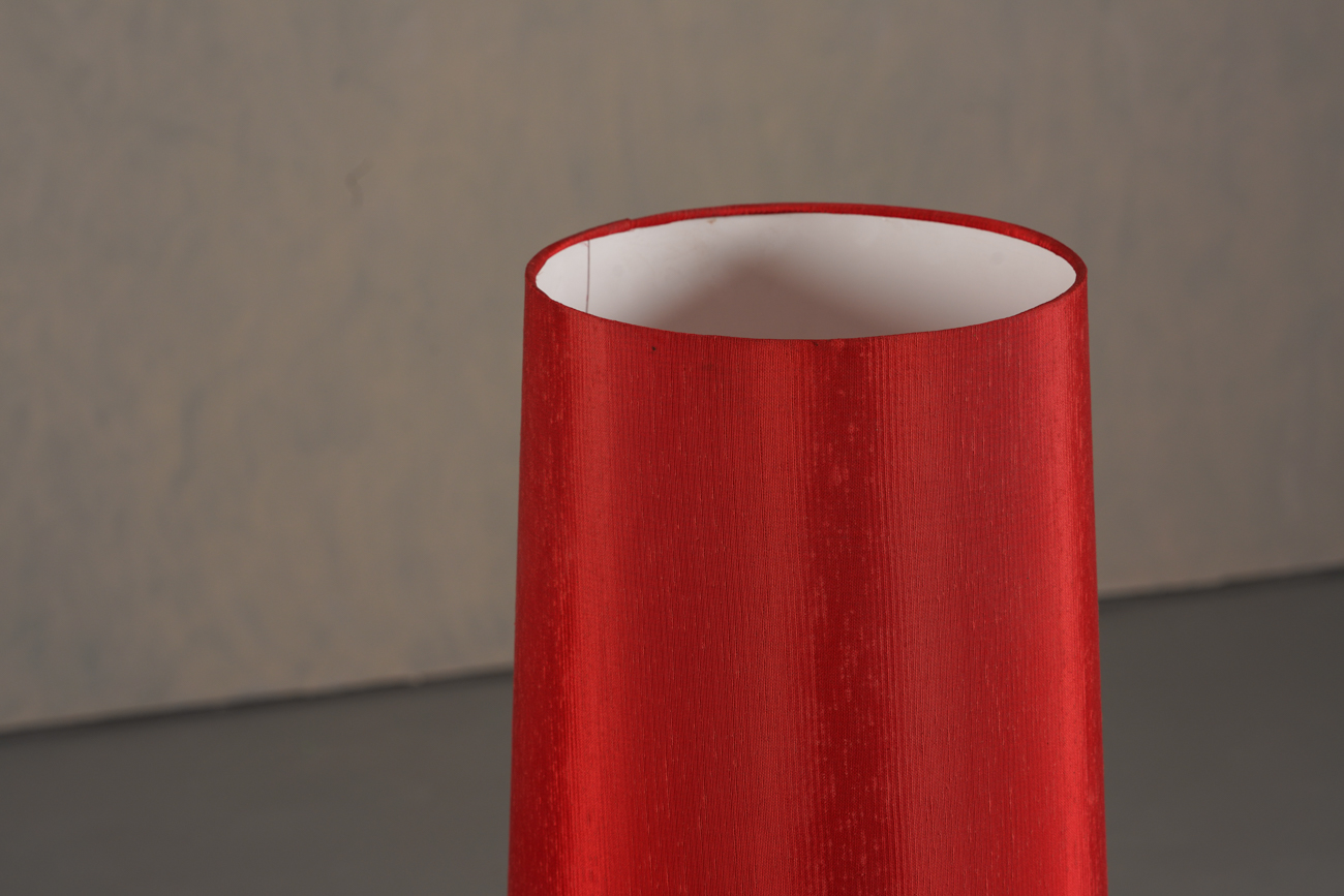 • Elongated conical red fabric shade