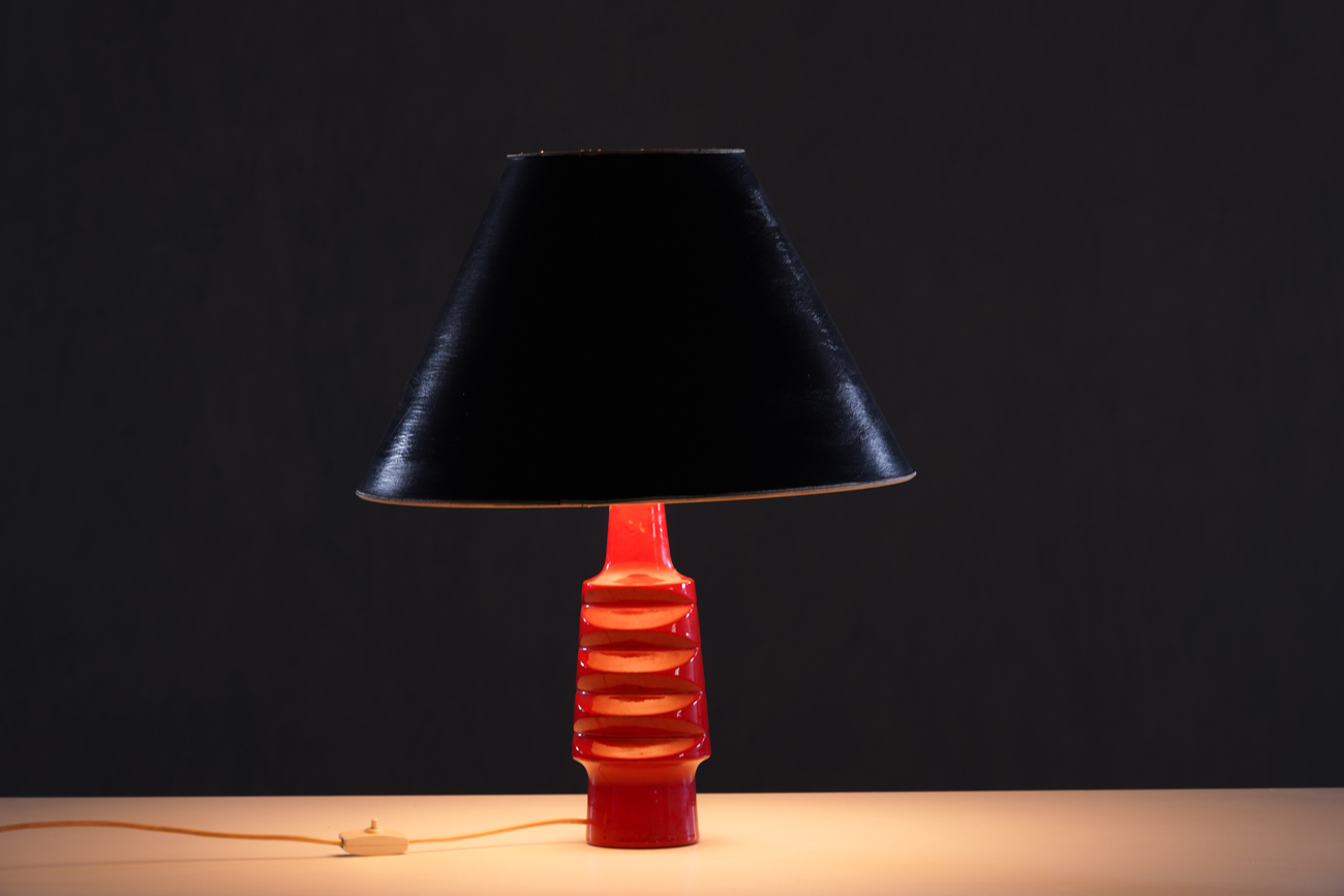 A vintage red and black table lamp — perfect for adding color, character, and Mid-Century Modern style to any space.