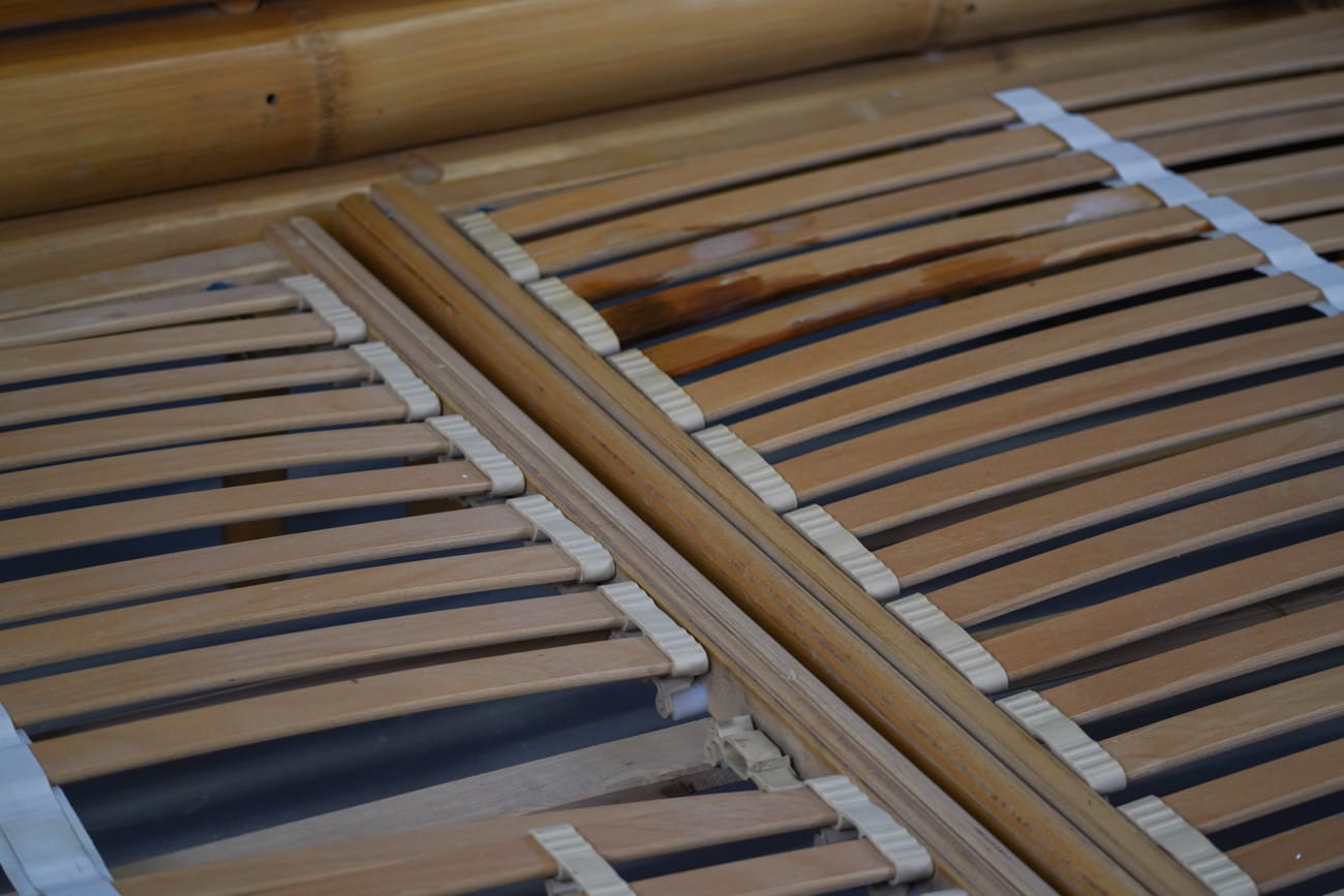 The structure is constructed using bamboo rods and secured with bamboo pegs and nuts, giving it an authentic, organic look. Lightweight yet sturdy, the frame brings a warm, relaxed feel to the bedroom and works beautifully in both modern and bohemian interiors.