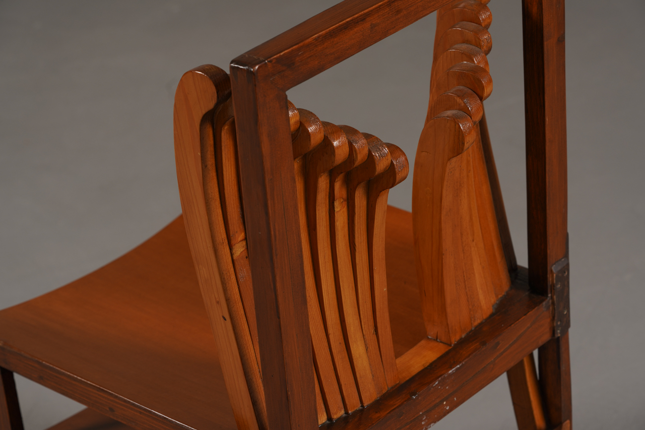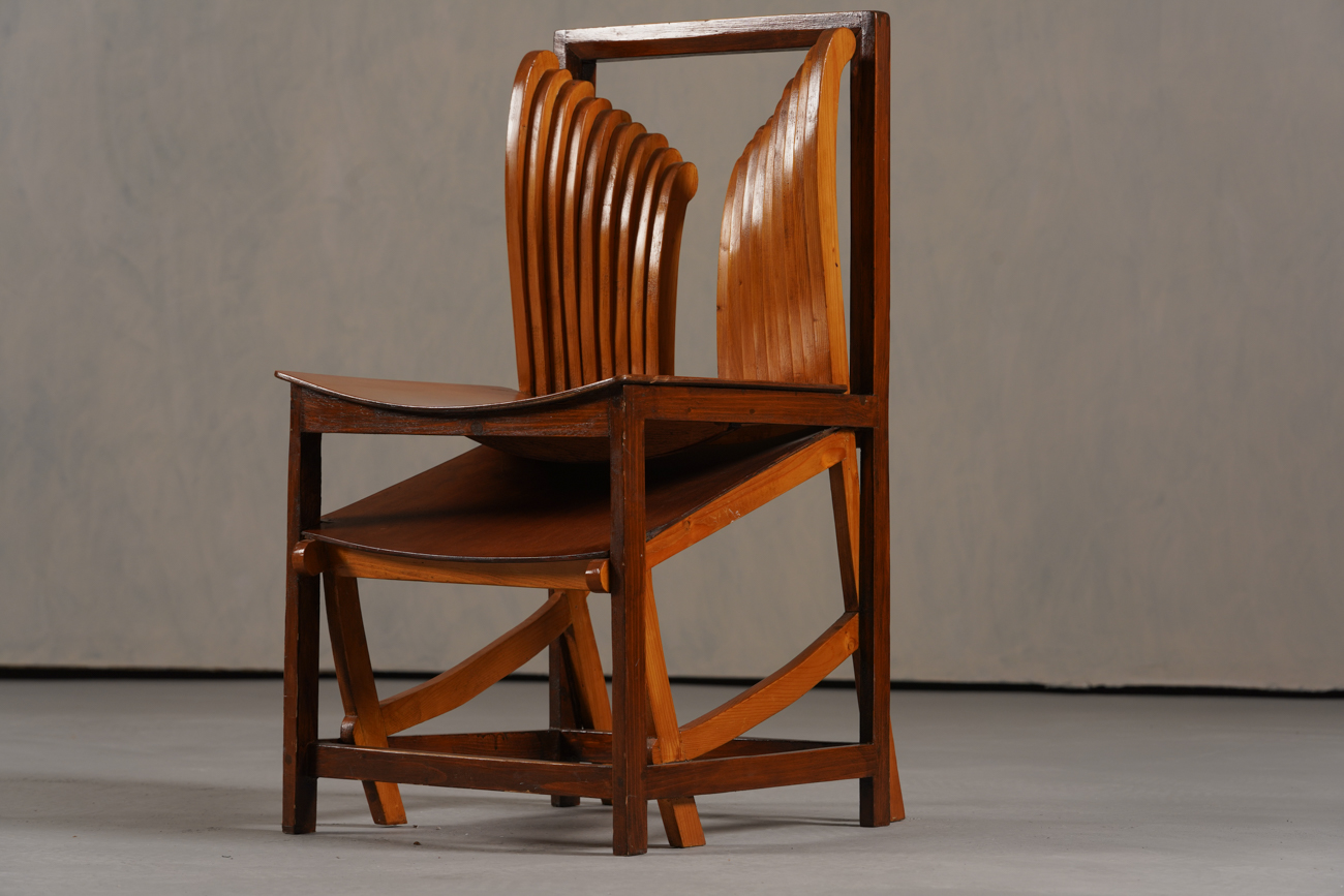 Made from a mix of nut wood, oak, and plywood, these chairs feel more like functional artworks than traditional seating. Their bold shape and unusual construction make them perfect statement pieces, adding a museum-like presence to any interior.