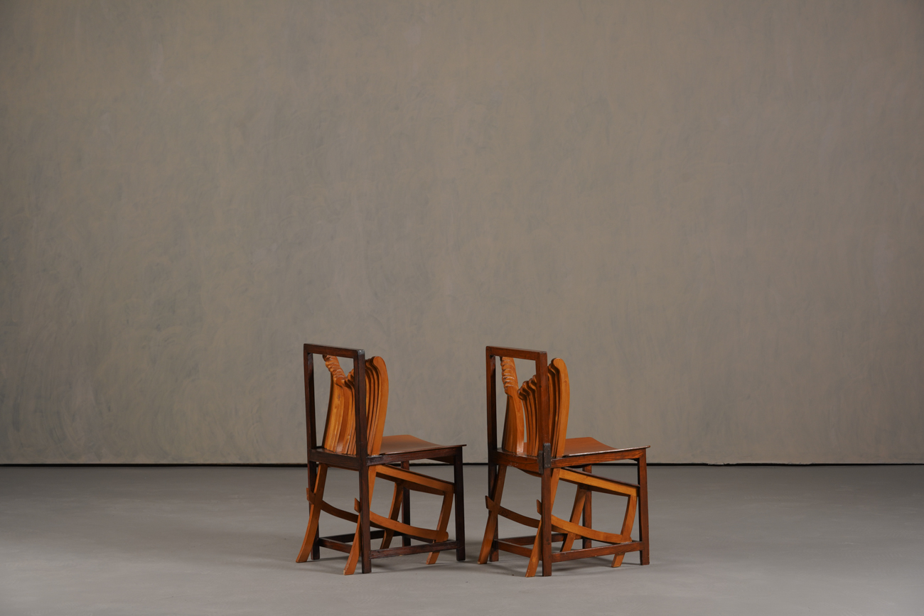 • Rare and eye-catching set of two chairs