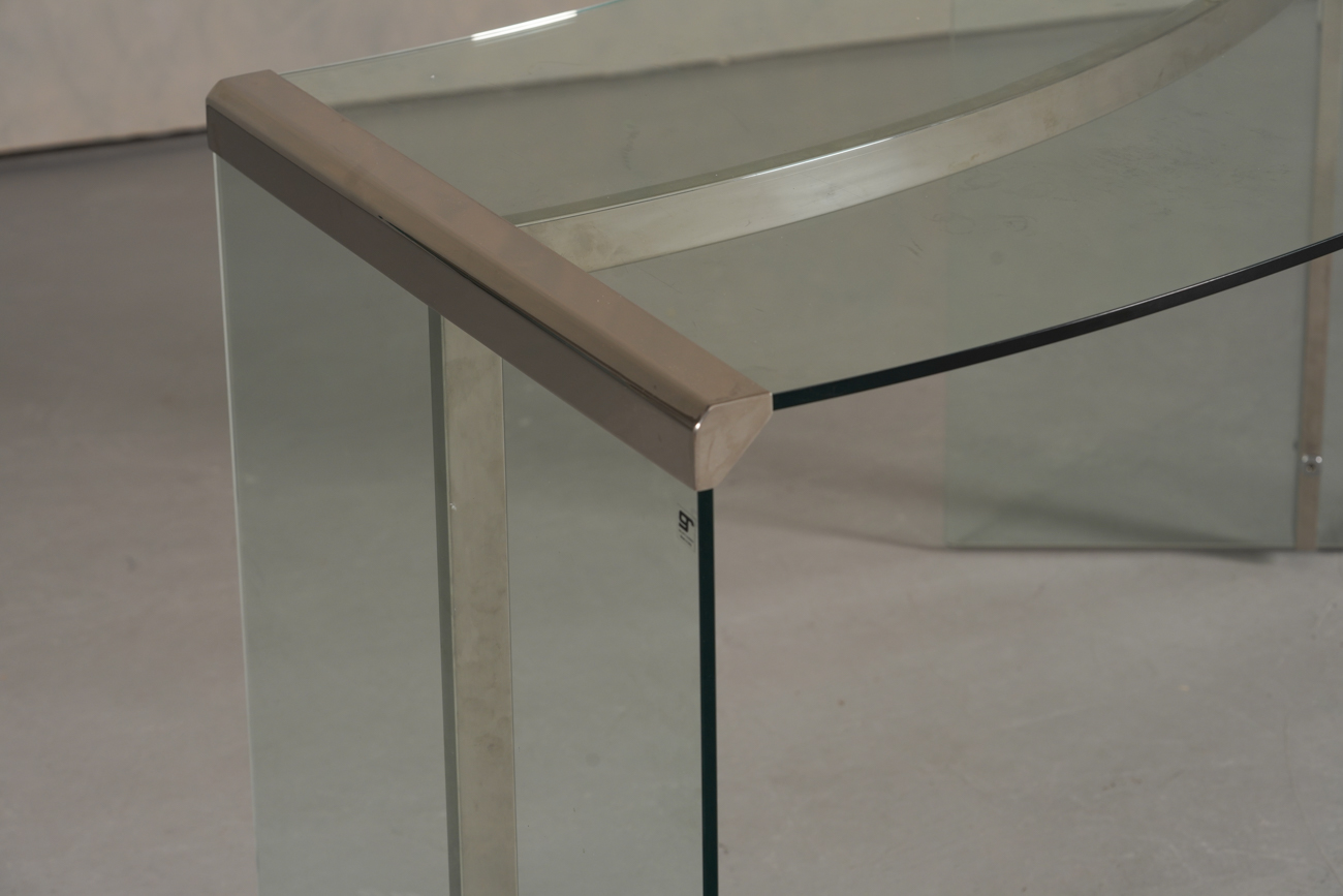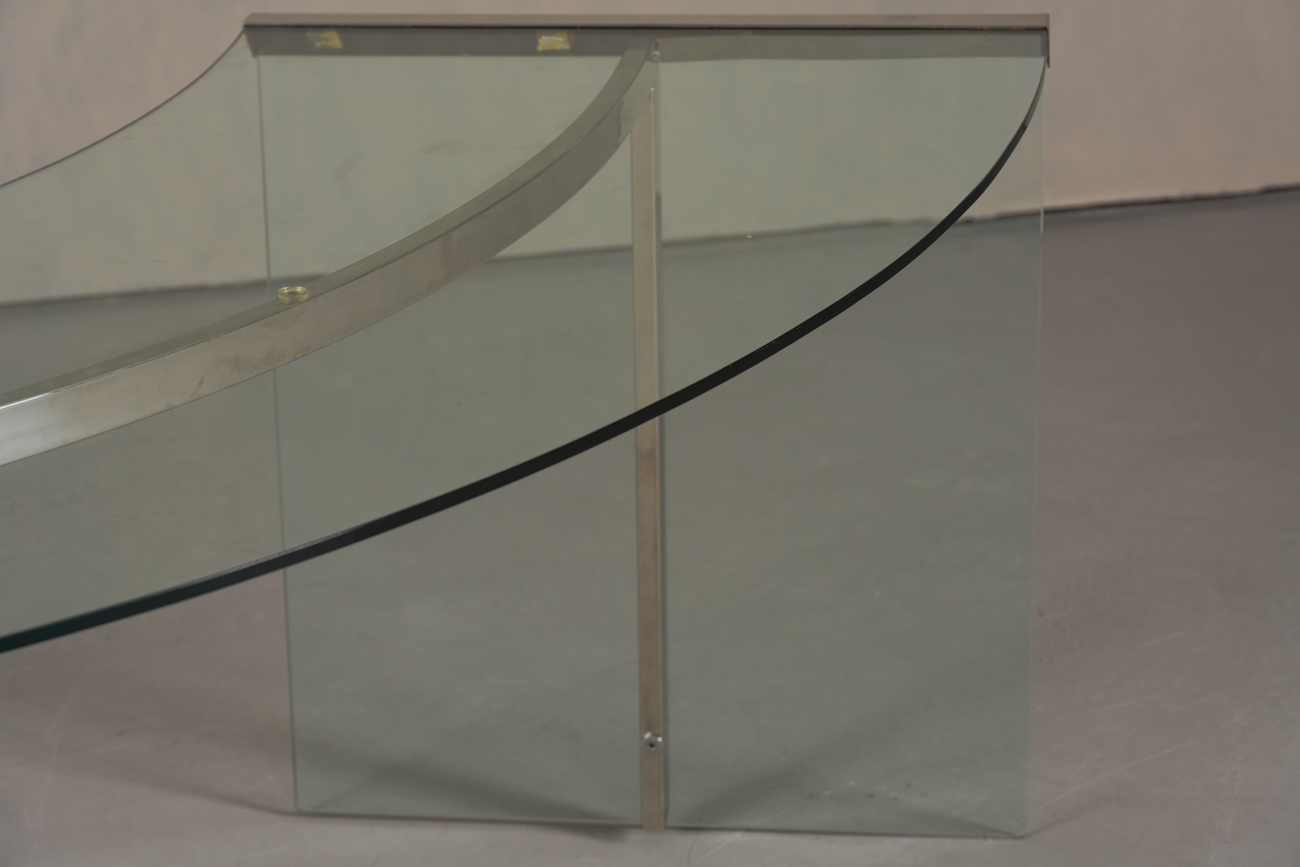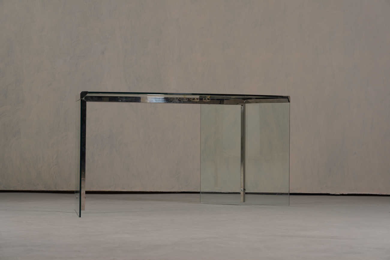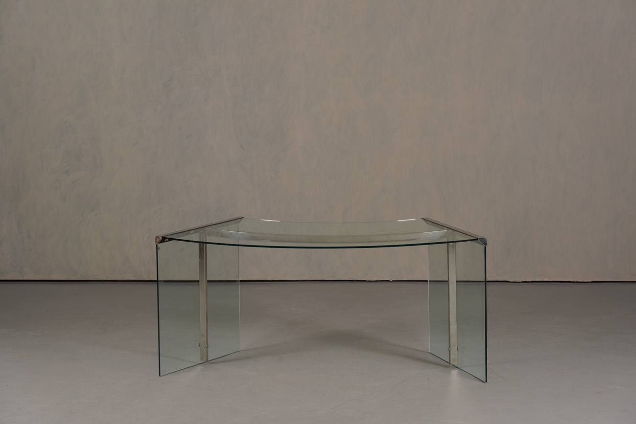 President Desk made of safety glass with a stainless steel frame. Originally designed by Gallotti & Radice in 1971, this piece is made circa 1988. Marked with label. Gallotti & Radice is a renowned Italian furniture and design company that has been crafting timeless pieces for over 60 years.