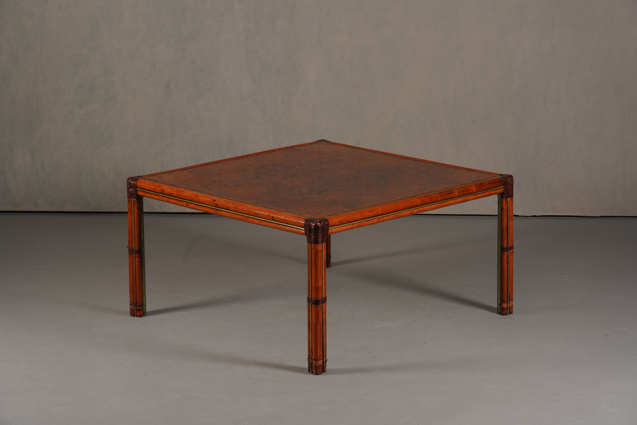 Vintage Italian Squre Dining Table In Burl Elm, by Alberto Smania for Studio Smania Interni, Italy 1960’s