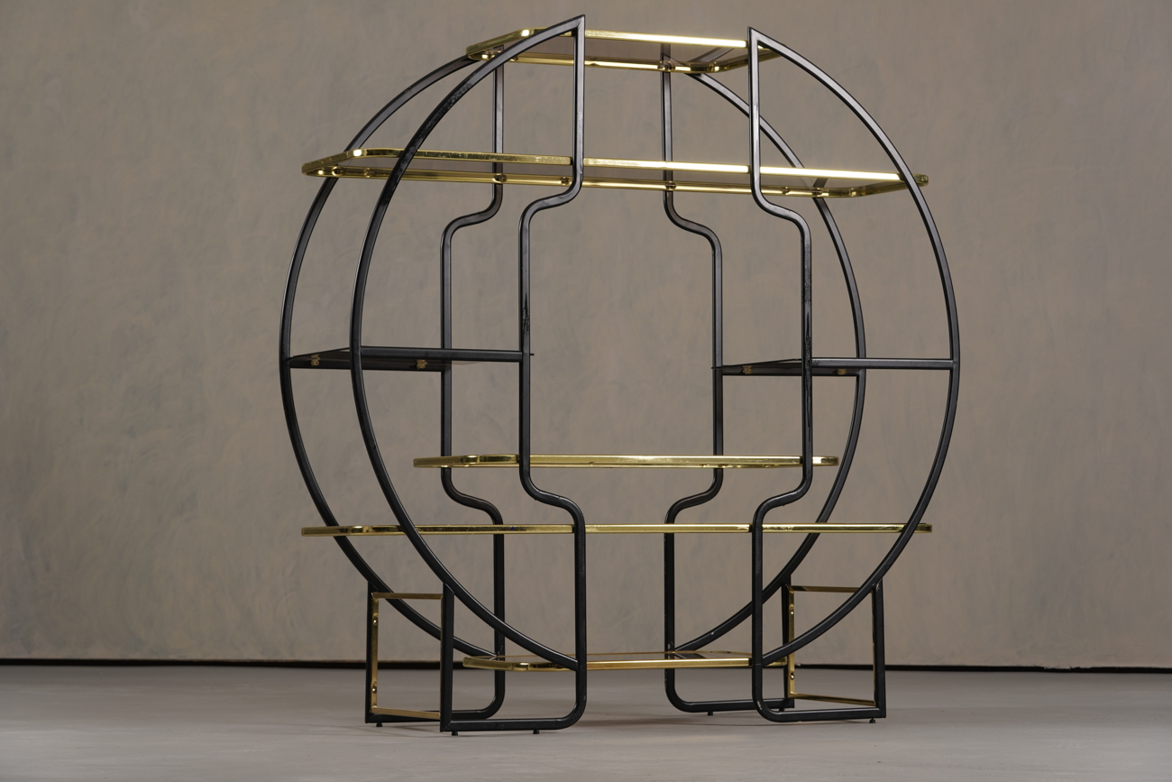 Inspired by the style of Maison Jansen and Milo Baughman, the design combines glamour with clean modern lines. Perfect for displaying books, decorative objects, or collectibles, it adds sophistication and presence to any living room or office.